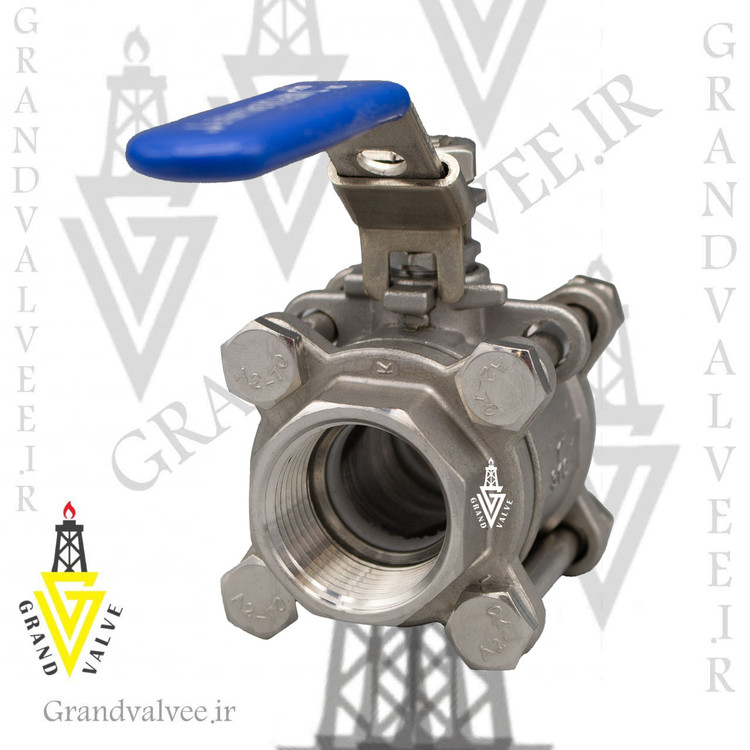 کد:1267 شیر گازی "4 اینچ 1000 وگ سه تیکه استنلس استیل 316 رزوه ای